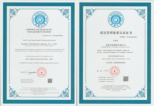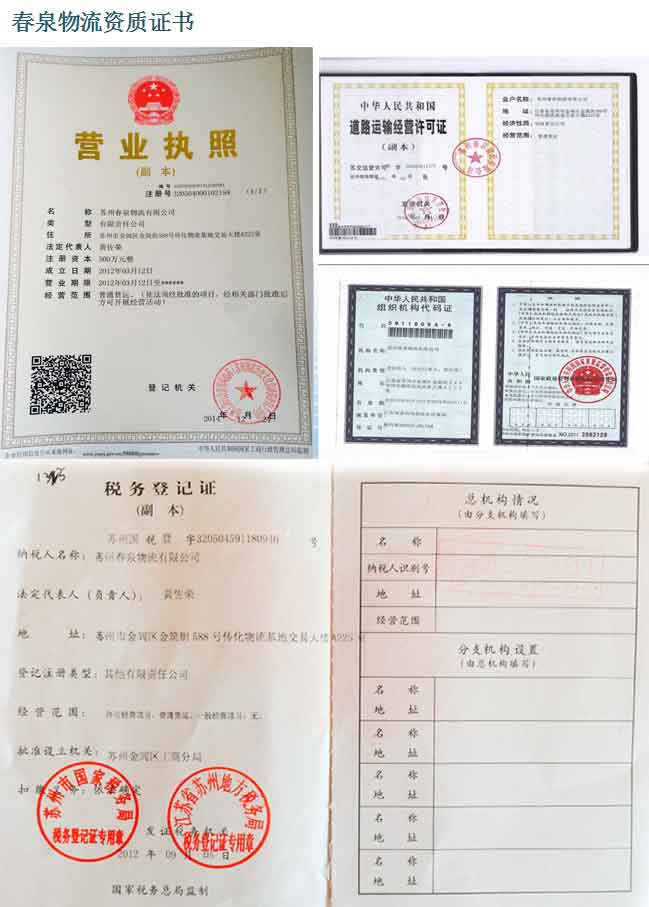 蘇州春泉物流公司:稅務(wù)登記證、企業(yè)營業(yè)執(zhí)照